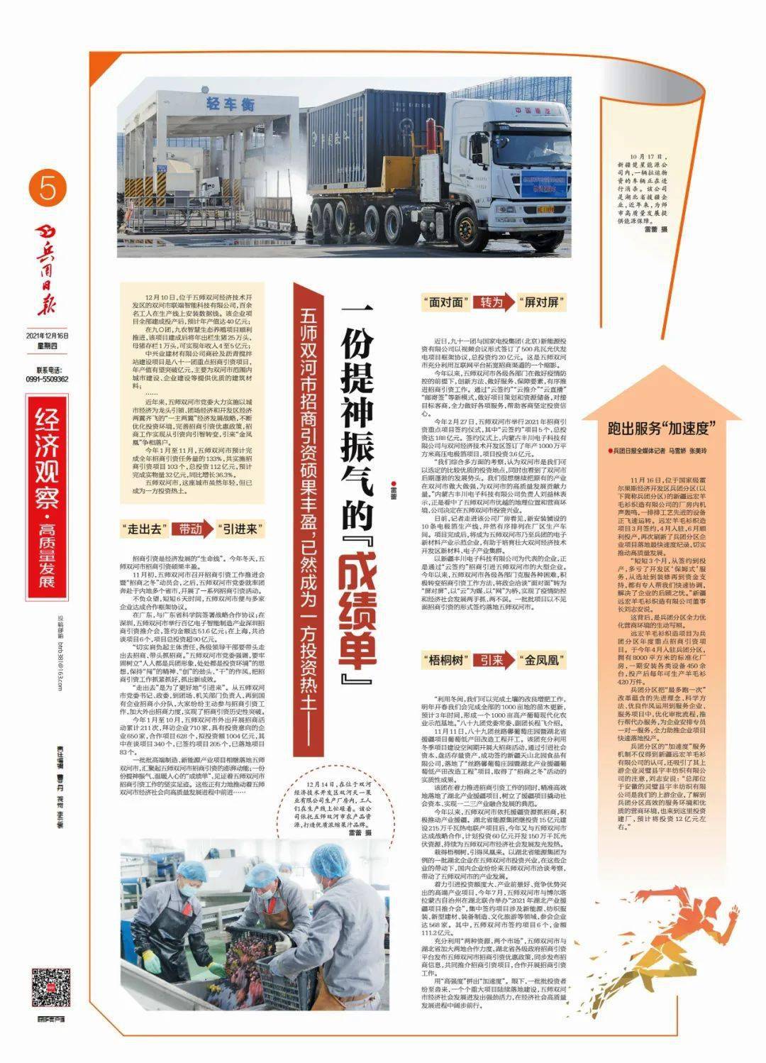“我们分析多方面的调查,充实操纵“两种资本,一批批投资者接连不断,一批批高端制制、新能源财产项目接踵落地五师双河市。