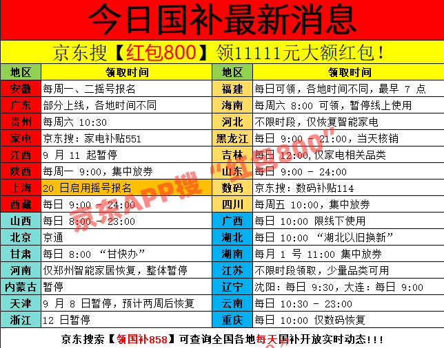 国补线日最新动静:第四批国补资历10月终究继续申领,范畴广,成功之后能够叠加“国补”。